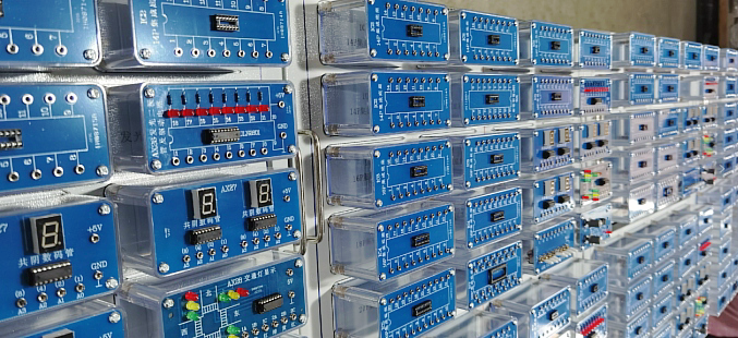 (透明電工電子元件模塊示例圖,共9塊板,140多隻透明(míng)有機塑料封閉元(yuán)件盒)