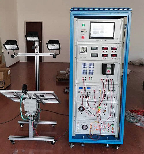 主要提供於職高、大學、研究生、企業技工以太陽能發電為主課題的研究和培訓。設備由模擬太陽燈、太陽能電池板、自動跟蹤(zōng)機構、光伏控製(zhì)器、儲能蓄電池、負載(zǎi)、儀(yí)表及工控一體機等組成。