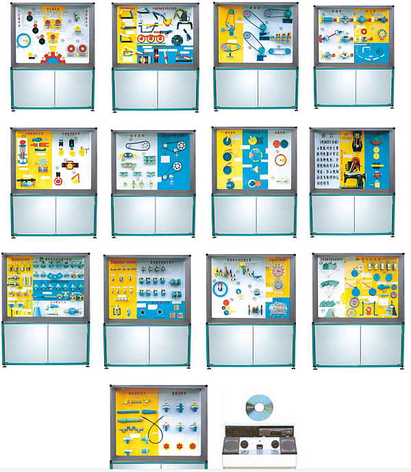 機(jī)械設計基礎陳列櫃-是根(gēn)據全國技工學校機械(xiè)類通用教材《機械基礎》示教陳列櫃是(shì)一套電化教學設(shè)備,機(jī)械基礎陳列櫃共分十個櫃和一個電腦控製台,聲控同步演示,采用單驅動(dòng)由電腦或電子設備控製運轉演示可(kě)由(yóu)VCD控製順序自動運行講解,又能根據教材教學需要遙控任意選擇進行單獨演示。機械設計基礎陳列櫃模型材料采用進口有機板製造,板麵附有銀滌綸不幹膠作必(bì)要的(de)圖表和文字說明(míng),演示形象逼真,運行可靠。