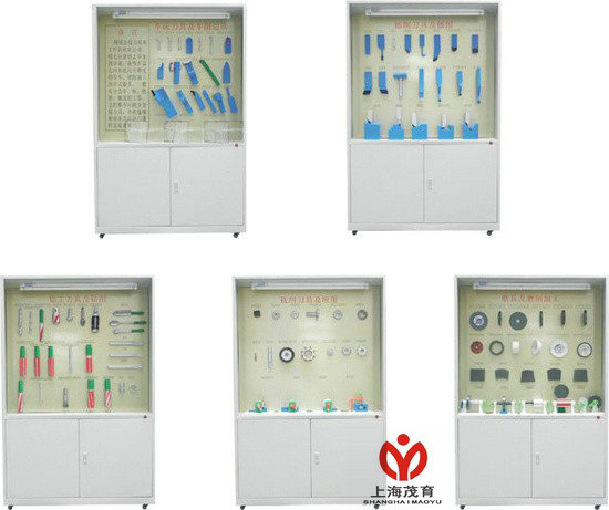 | 第四櫃、銑削刀具及應用 | 圓柱形銑刀、成形(xíng)銑刀、角度銑刀、鍵槽銑刀、半(bàn)圓形銑刀、立銑刀、整體焊接式端銑刀、齒輪銑刀、直齒三(sān)麵刃盤銑刀(dāo)、錯齒三麵刃盤銑刀、硬質合金端銑刀、銑階台、銑特形(xíng)麵( 2 種)、圓柱銑(xǐ)刀銑平(píng)麵。 |