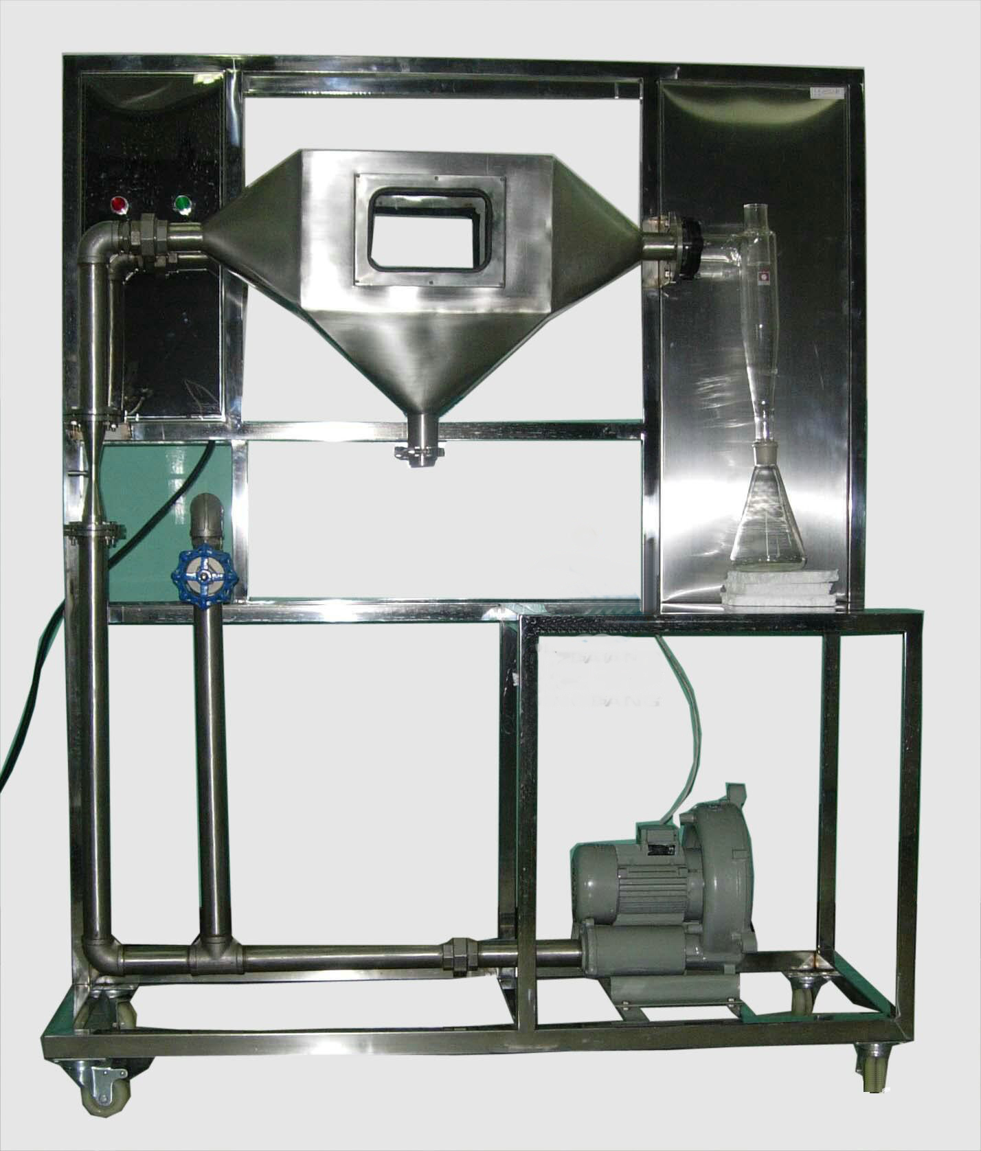 1、304不鏽鋼重力沉降室:200×200×400mm。 2、玻璃旋風分離器(qì):Φ100×400mm。 3、玻(bō)璃U型管壓差計。 4、鼓風機:旋渦氣泵,功率 550W,最大流量70m3/h。 5、304不鏽鋼文丘裏(lǐ)加料器。 6、電器:接觸(chù)器、開關、漏電保護空氣開關。 7、304不鏽鋼管路(lù)、管件及閥門。 8、304不鏽鋼儀表櫃:測控、電器設(shè)備在實(shí)驗架上。 9、304不鏽(xiù)鋼(gāng)材質框架1000×500×1600mm(長×寬×高) 帶腳輪及禁錮腳。 |