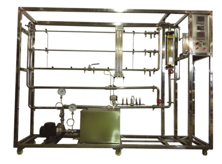 1、304不鏽鋼光滑管:管內徑(jìng)d—10mm,管(guǎn)長L—1500mm。 2、304不鏽鋼粗糙管:管內徑d—12mm, 管長L—1500mm,內裝不鏽鋼螺旋絲。 3、304不鏽鋼局部管:管(guǎn)內徑(jìng)d—20mm, 管長L—1500mm,上(shàng)有不鏽鋼閥門一個。 4、流量測量:轉子流量計,流量範圍(wéi) 160~1600 L/h和16~160 L/h 。 5、DN32渦輪流(liú)量計:流量範圍(wéi)1~15 m3/h,分辨率(lǜ)0.01 m3/h,4-20mA遠傳輸出數字顯示,流量檢(jiǎn)測機構。 6、壓差傳感器:量程(chéng)0~150KPa,4-20mA遠傳輸(shū)出,壓差檢測機構。 7、文丘裏流(liú)量計:文丘裏喉徑:Φ13mm,304不鏽鋼。 8、溫度傳(chuán)感器:Pt100,分辨率0.1℃,精度0.5%。 9、功率變送器、智能功率數字顯示儀。 10、玻璃倒U型壓差計,0--600H2O。 11、泵進口壓力:指針示真空表,測量範圍-0.1-0MPa;泵出口壓力:指針示(shì)壓力表, 測量範圍0-0.4MPa 。 12、宇電AI501溫度數字(zì)顯示儀。 宇電AI501流量數字顯示(shì)儀。 宇(yǔ)電(diàn)AI501壓差數字顯示儀。 13、304不鏽鋼離心(xīn)泵:功率550W,流量範圍(wéi)0-7m3/h。 14、水箱:304不鏽鋼材質,容積100L,帶貯水(shuǐ)排空底閥,管路循(xún)環回水與(yǔ)泵吸入口間(jiān)隔板設計。 15、管路:304衛生級不鏽鋼材質,采用不鏽鋼快裝活(huó)接與管路連接;管道活接連接渦輪流量計。 16、閥門:采用304不(bú)鏽鋼閥和優質銅閥。 17、電(diàn)器:接觸器、開關、漏電保護空氣開(kāi)關。 18、304不鏽鋼儀表櫃:測控、電器設備在實驗(yàn)架上。 19、304不鏽鋼材質框架2400*550*1800mm(長×寬×高),帶腳輪(lún)及禁錮腳。 20、工程化標(biāo)識:包含設備位號、管(guǎn)路流向箭頭及標識(shí)、閥門位號等工程化設備理 念(niàn)配套,使學生處於安全的實驗操(cāo)作環境中,學會工程化管(guǎn)路標識認知,培養學生 工程化理念。 |