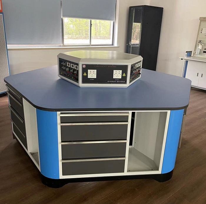 技能工作台由六邊形工作台、六(liù)邊形電源控製屏(píng)及典型工作任(rèn)務(wù)組成,能容納6名學(xué)生在設備上進行操作。