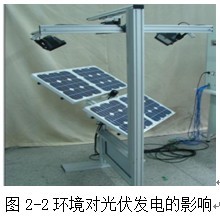 2、環境對光伏發電的影響:將太陽能電(diàn)池板(bǎn)遮擋0%、電池板遮擋25%、電池板遮擋(dǎng)50%、電池板遮擋100%、晨日燈(dēng)開啟、午日燈開啟(qǐ)、晚日燈開(kāi)啟和自然光照射,觀察電池板的電壓電(diàn)流變化,了解環(huán)境對光伏發電的影響。如圖2-2所(suǒ)示: