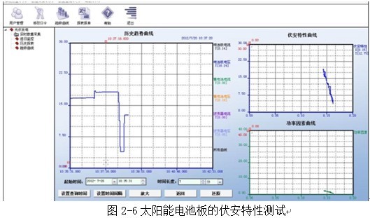 將太陽能發電電(diàn)池板(bǎn)輸出端接成12v或(huò)者24v輸出形式,接(jiē)到滑動變阻器兩端,觀察電流電壓變化。通過監控軟件的到相(xiàng)應的數據。如圖2-6所(suǒ)示: