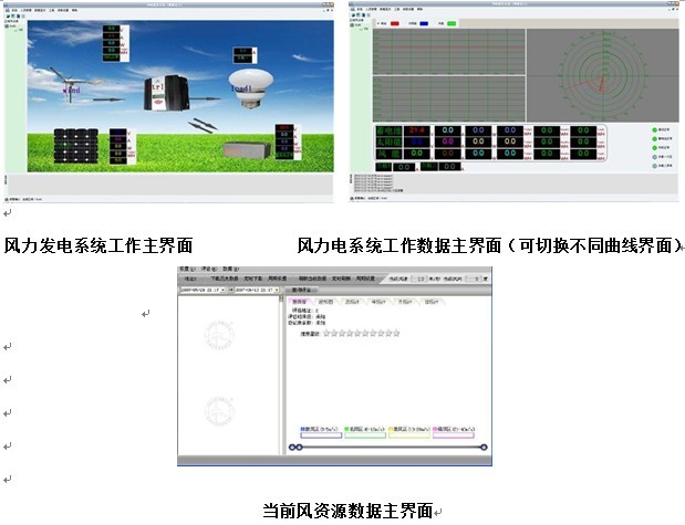 ◆ 顯示內(nèi)容:蓄電池電(diàn)壓、風機電壓、光伏電壓、風機電流、光伏電流、風機功率、光伏功率,能量(liàng)模擬圖,當前風速(米/秒),當前風(fēng)向(度),當前風力資源平估。