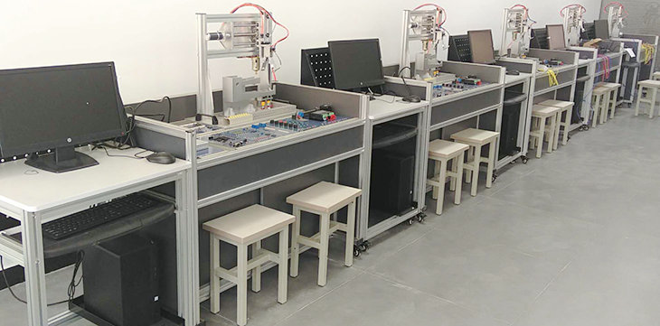 尺寸(cùn)1160*720*840 采用符合(hé)人體工學的平斜麵設計,所有模塊平(píng)斜放於桌麵固定槽內,實(shí)驗視線同讀書一樣,自然往下(xià),利於思考。同時解決傳統立式結構的視線遮擋,無法看見教師教學的問題。工藝上采用(yòng)優質鋁材,16mm以上黑色木板,家(jiā)具級封邊工(gōng)藝,帶3個櫃(guì)子,優質鉸鏈,鋁合(hé)金把手,帶4個可鎖式腳(jiǎo)輪(lún)便於(yú)移動。 |