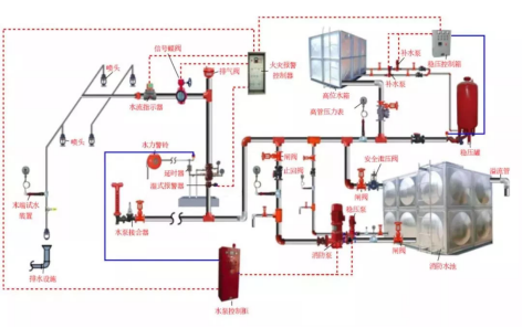 自動噴水(shuǐ)滅火係統原理(lǐ)圖