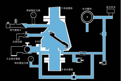 可見,幹式自動噴水滅火係統的主要工作過程,與濕式自動噴水滅火係統(tǒng)區別在於前者噴頭動作後有一個排氣過(guò)程,這將影響滅火(huǒ)的速(sù)度和效果。對於管網容積較大的幹式自動噴水(shuǐ)滅火係統,設計時這種不(bú)利影響不能(néng)忽(hū)略,通常要在幹式報警閥出口管(guǎn)道(dào)上,附加一個(gè)“排氣加速器”裝置,以加快報警閥處的(de)降壓過程,讓報警閥(fá)快些(xiē)啟動,使壓力水迅速進入充氣管(guǎn)網,縮短排氣(qì)時間(jiān),及早噴水滅火。