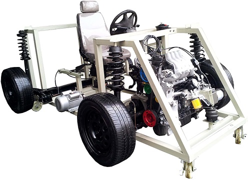 包括汽車前後懸掛係、轉向係、傳動係、手動變速器及掛檔機構、製(zhì)動係等係統(tǒng)、安(ān)裝腳輪的可移動式台架等(děng)組成。
