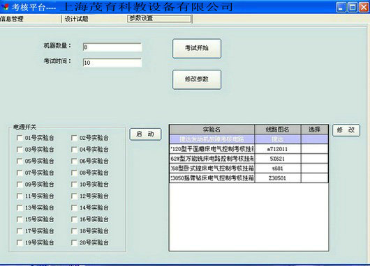 主界麵時實監控(kòng)設備的運行,根據學生輸入學號給(gěi)指定設備發送該學生的試(shì)題,並給(gěi)出相應的文字提示。在學生考試期間時實記錄學生考試信息,根據學生答題情況不斷調整故障的數量,判斷學生考試情況(kuàng),作出不同(tóng)的提示信息及保存學生考試結果。