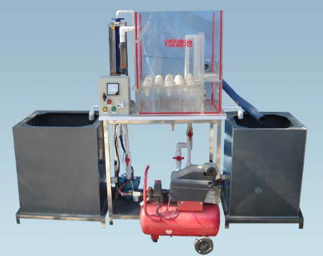 1、單格(gé)V形濾池1套:透(tòu)明有機玻璃材質、厚度10mm,包含小阻力配(pèi)水係統、配氣空濾板,氣(qì)吸管(guǎn)、水衝洗水管、濾料層、進水V型槽、排水槽、清水渠、排水渠等(děng);
