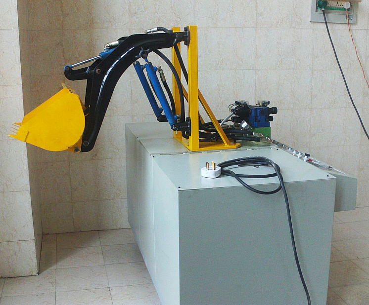 3、裝載機械按實(shí)物比例縮小的全金屬結構(gòu),實驗時啟動液壓係統根據實驗要求模以操作機械進行工作。