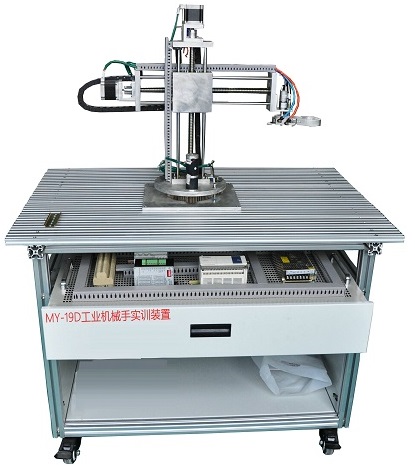一、基礎工業機械(xiè)手實訓裝(zhuāng)置采用(yòng)坐標式機械手,可完(wán)成(chéng)機械手旋轉、手臂垂(chuí)直上下移動、手臂水平移動,手爪旋轉四(sì)個自(zì)由度的位置精確控製;同時配置(zhì)晶體管式可編程控製器,用於對整個機械手進行複雜的位置(zhì)控製。通過在該實訓裝置上(shàng)的實訓和操作,學生可熟練掌握PLC高級指令、傳感器、旋轉編碼器、氣動控製、步進電(diàn)機、氣動手指、直流減速電機(jī)、精確機(jī)械位置傳動等技術的綜合應用。