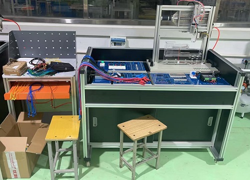 13、智能物料搬运装置:配置双轴机器人作为装配的执行机构(gòu),具有X轴、Y轴两(liǎng)个方(fāng)向的执行能力,可完成智能抓取物料放料等功能;配置有行(háng)程开关,光电传感器,光(guāng)纤传感器(qì)等,可确保各执行器的准确定位;超出最大行程时,具有硬件自动保护功能,确保系统(tǒng)安全及人身安全;本装置为通用的(de)模块(kuài)化的多功能装置,各功能端口(kǒu)完全(quán)开放(fàng),可(kě)以能(néng)过不同的(de)接线来完成各种(zhǒng)不同的功能,为学生的创新设计(jì)提(tí)供了(le)广(guǎng)阔的发挥空间。