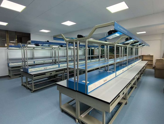 1、實訓台:采用工(gōng)業(yè)鋁合金型材框(kuàng)架,共兩(liǎng)層,其中第一層(céng)可放置維修工具、套件、儀器儀表;第二層可(kě)放顯示器,頂部設有30W日光燈一盞和風扇(shàn)一台。實訓台設有一個抽屜、兩個鍵盤托架、兩個(gè)主機櫃,下方有(yǒu)四個刹車的(de)萬向輪(lún)。