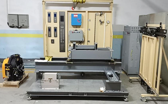曳引係統采用真實電(diàn)梯曳引機,按照真實電梯的安裝方式安(ān)裝在機械框架上,機械框架由(yóu)腳輪可(kě)變換場地位置。還配(pèi)備的機械(xiè)可移動式吊架,可對曳引機進行維修(xiū)、調(diào)整、安裝保養等項目的操作。