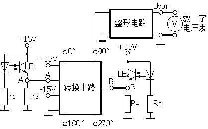 2、图17-2为测速装置示意图(tú),其中微型电动机带动转盘在两个成90度的光(guāng)继续(xù)器的开口(kǒu)中转(zhuǎn)动,转盘上一(yī)半为黑色,另一半透明,转动时,两个光继续器将输出不同相位的方波信号,这两个方波信号(hào)经过转换电路中的四个运放器,可输出相位差分别为(wéi)0°、90°、180°、270°的方波信号,它们的频率都是相同(tóng)的,其中任意一个方波信(xìn)号均可(kě)输出至频率表显示频率。原理如图17-3所示。