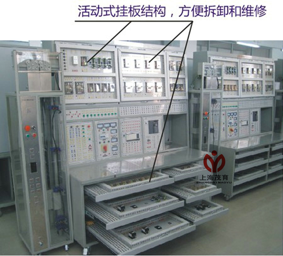 ★設備采用台式結構,設置活動式抽屜電氣板,每層抽屜板均(jun1)設(shè)置有(yǒu)公共接線板(總線型接線(xiàn)方式,總線連接點數必(bì)須達到120點以上),抽屜電氣板之間采用(yòng)工業坦克鏈連接,公(gōng)共抽屜板連(lián)線采用真實電梯多芯隨行電纜(lǎn)。