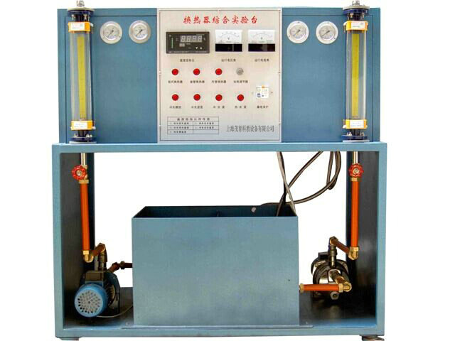 本裝置由套管(guǎn)式換(huàn)熱器,板式換熱器,列管式換熱器,冷(lěng)、熱水防腐水泵,冷、熱水轉子流(liú)量計,冷、熱水不(bú)鏽鋼原水箱及加熱水箱,順、逆流調節閥門組,阻力測試(shì)壓力表及U型差壓計,加熱由固體(tǐ)調壓模塊無級調節,萬能(néng)信號輸入巡(xún)檢(jiǎn)儀顯示溫度,電流表,電壓表,不鏽鋼台架及控製屏(píng)等組成。