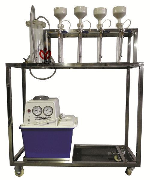 本裝置主要配置(zhì):真空泵、計量筒、緩衝罐、布氏漏鬥、濾紙、高壓氣管、排空閥、不鏽鋼框架。