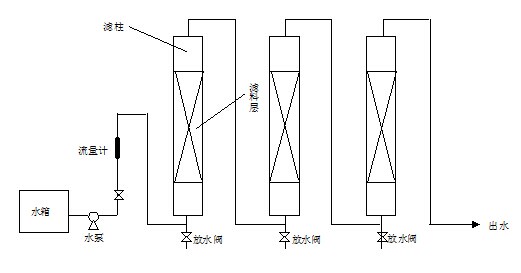 2、啟動水(shuǐ)泵,用(yòng)閥門調整中和過濾柱的流量使其達到所規(guī)定流速,完成4個濾率的(de)實驗,濾率采用50、100、150、200L/h,觀察中和過程中出現的現(xiàn)象。