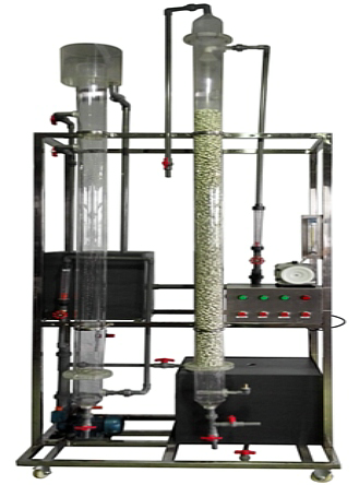本實驗由中和柱(zhù)、吹脫柱、空壓機、泵、填料、流量計、配水池、閥門、管道、電路控製係統、不鏽鋼框(kuàng)架、控製屏等組成(chéng),如圖1所示。