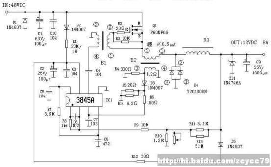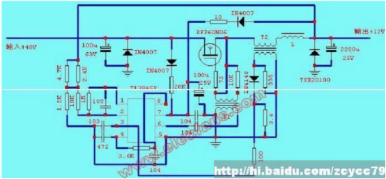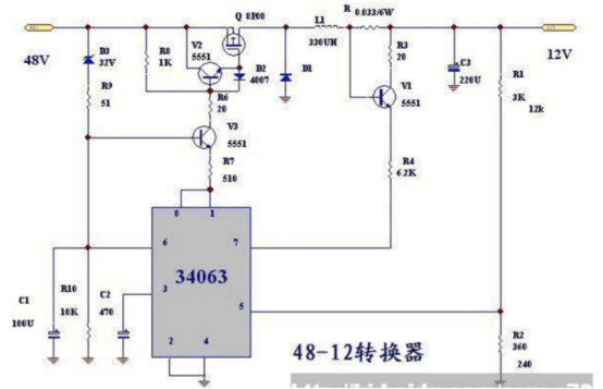 圖3 電動車電源(yuán)轉換器電路圖(DC:48-12V)