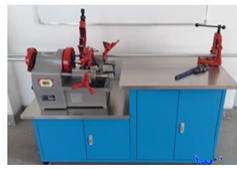 1.按照人體工學原理設計,采用台階式結構,台麵為兩級(jí)台階結構,左(zuǒ)邊低台安裝有電動套絲機。右邊高台安裝管虎(hǔ)鉗,兼顧操作台,下邊是兩層儲物櫃。
