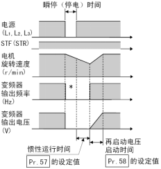 ·在再啟動的電壓(yā)上升時,如果發生瞬(shùn)間停止,將從啟動頻率開始啟動。