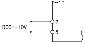 用DC0~5V(或DC0~10V)在頻率設定輸入端(duān)子2-5之間輸入頻率設定輸入(rù)信號。端子2-5之間輸入5V(10V)時(shí)輸出頻率為(wéi)最大(dà)。