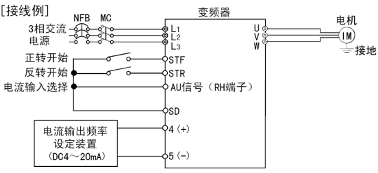 電源是使用(yòng)變頻器內置(zhì)電(diàn)源,還是使用外部電源。使用內置電源時端子10-5間輸出(chū)DC5V。