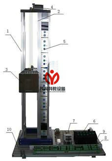 模(mó)型由主體(tǐ)框架及導軌、轎箱及門控係(xì)統、配(pèi)重、驅動電機、外呼(hū)按(àn)鈕(niǔ)及顯示屏、內選按鈕及指示燈和控製係統組成,結構如(rú)圖所示。