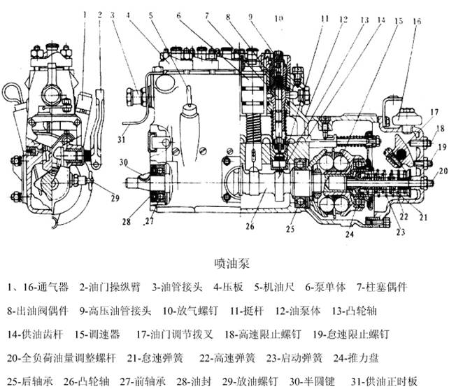(5)燃油係統:主要包括噴油泵、噴油器等。