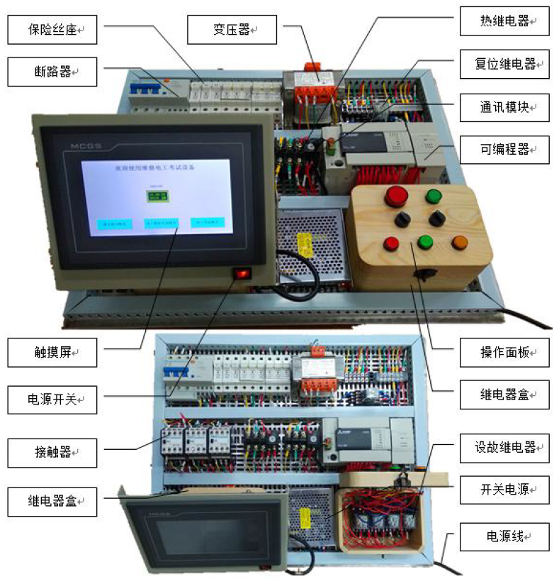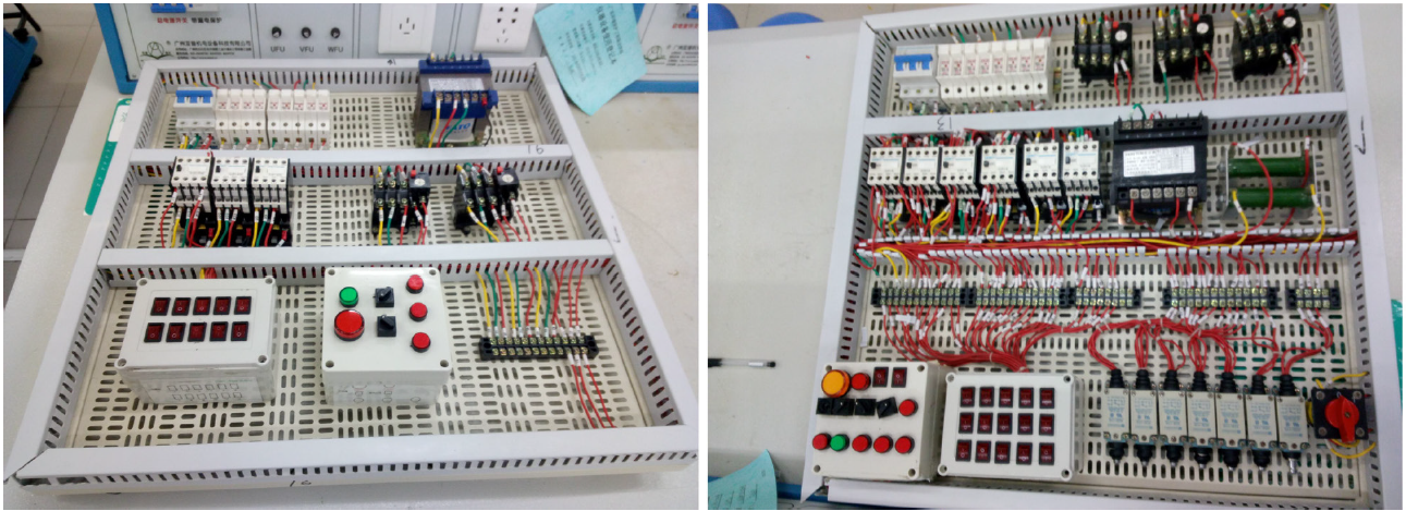 如上述回路,改造後的維修電工故障排查考核實訓裝置實物參考圖4。