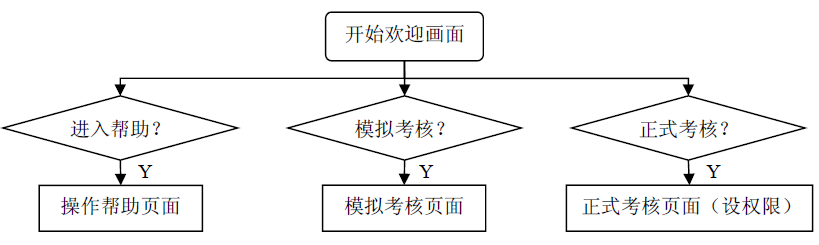 開機為歡迎(yíng)界麵。可選擇進入“幫助(zhù)”“練習模式”和“考核模式”,如圖5,選擇後可啟動對(duì)應的模塊功能,其中“考核模式”的進入設置有(yǒu)賬戶權限。