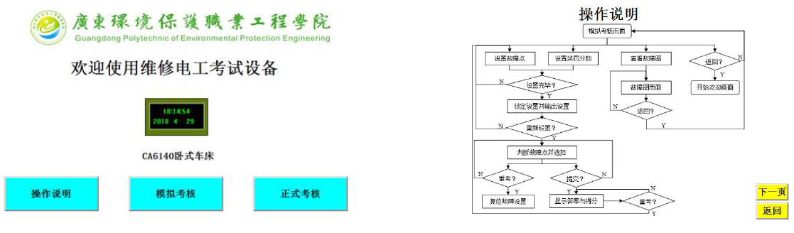 本考核實訓裝置電氣控製係統的軟件主要由歡迎界麵、練習模式、考核模式以及附加(jiā)功能四個模塊組成。