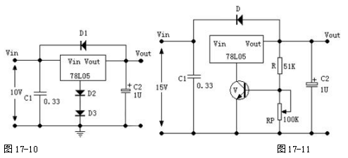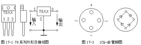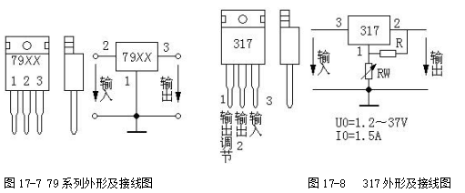 (2)圖17-8為可調輸出正三端穩壓器317外形及接線(xiàn)圖(tú)。