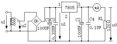 圖17-2 由7805構成的串聯型穩壓(yā)電源