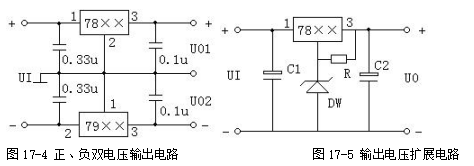 圖17-4為正、負(fù)雙電壓輸出電路,例如需要U