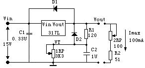 LM3l7L最大輸(shū)入電壓40V,輸出1.25V~37V,可(kě)調最大輸(shū)出(chū)電流100mA。