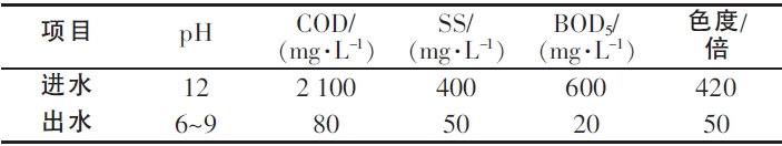 該廢(fèi)水(shuǐ)水量約1000m3/d,主要來源於絲(sī)光廢(fèi)水、退漿廢水、漂白廢水及印染廢水等(děng),堿度(dù)大,COD、色度、SS較高。廢水(shuǐ)中含(hán)有漿料、殘餘染料、纖維素、表麵活性劑、漂白劑(jì)等,其(qí)中使用的上漿劑為難(nán)降解的聚乙烯醇。根據(jù)企業提供的進水(shuǐ)水質,確定主要進、出水水質(zhì),如表1所示。