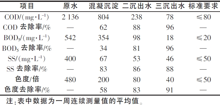 表2 進、出水水質及各單元去除率(lǜ)