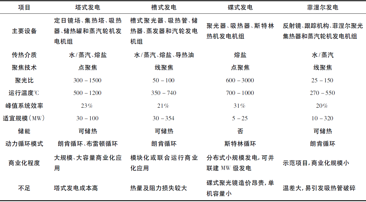 表(biǎo)1 四種光熱發電技(jì)術的特性對比表