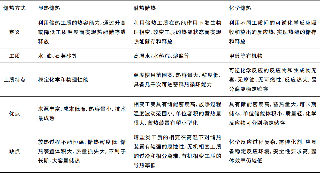表2 太陽能光熱發電係統中蓄熱方式的(de)特(tè)性對比