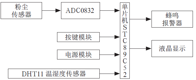 本次設計,結構組件包含了(le)AD 數據采(cǎi)集、STC89C51型號單片機、報警控(kòng)件、煙霧感應組件等。總體框圖如圖2所示。