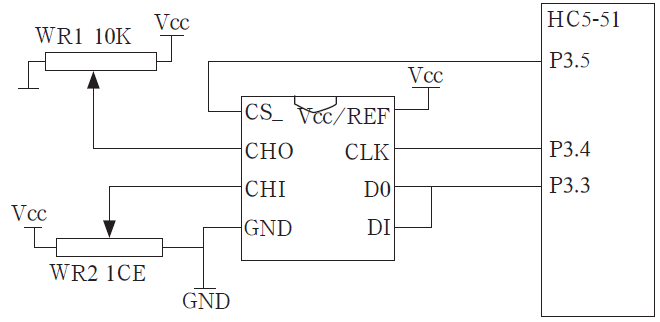 圖5 單片機與轉換(huàn)器接口(kǒu)電路示意圖