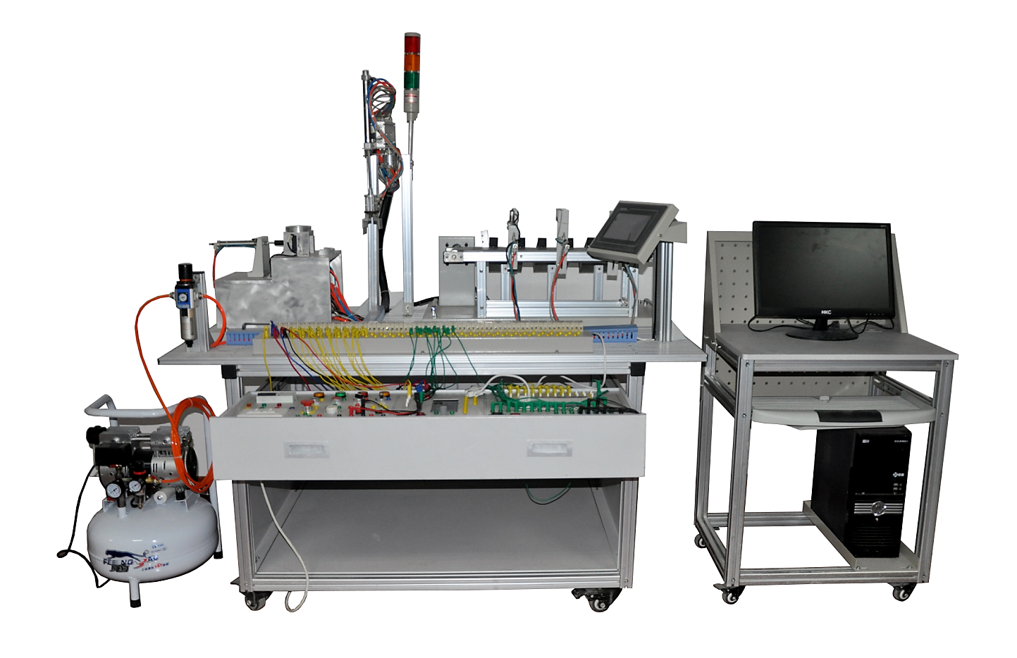 光機電一體(tǐ)實訓台是在培養從事機電(diàn)一體化設備的使用、維護、維修、設備的管理與設計等工作的高素質、高技能、應用型(xíng)高級職業技術人才。是根據職業教育(yù)培訓教材編寫《機電一體化專(zhuān)業》相關的技能培訓要求(qiú)而研製的,結合當(dāng)前(qián)工業自動化(huà)應用技術及器件技術的發展,充分考(kǎo)慮實用性、先進性(xìng)。根據任務(wù)引領式行為導向教學法,以重點培(péi)養學生的動手實(shí)操能力,團隊協作能力,創新能力。光機電一體實訓裝置由鋁(lǚ)合金導軌式實訓台、典型的機電一體化設(shè)備的機械部件、PLC模塊、變頻器模(mó)塊、步進電機(或伺服電機)模(mó)塊(kuài)、按鈕模塊、電(diàn)源模塊、模擬生產設備實訓模塊、接線端子排和各種傳感器、計算機等組成。同時還要求具有可拓展(zhǎn)功能,可以組成更加大型的生產模擬係統,以配合各個學校不同層(céng)次,不同專(zhuān)業的教學及培訓要求。