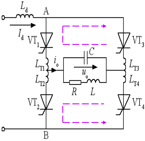 1.由四個橋臂構成,每個橋臂的晶閘管各串聯一個電抗器,用來限製晶閘管開通時的(de)di/dt。