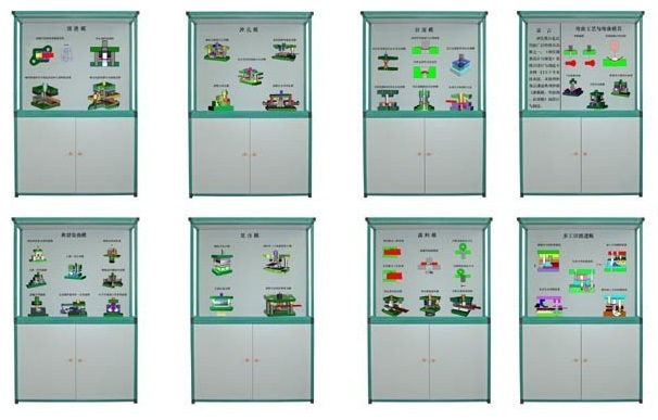 | 第六櫃 落料模 | 1、成形側刃(rèn)工作原理;2、矩形側刃工作原理;3、衝裁件斷麵(miàn)情況;4、導板(bǎn)式簡單落(luò)料模;5、導柱式彈頂落料模;6、衝孔落料連續模;7、凸模鉚接固定方式;8、凸模(mó)台階固定方(fāng)式 | |